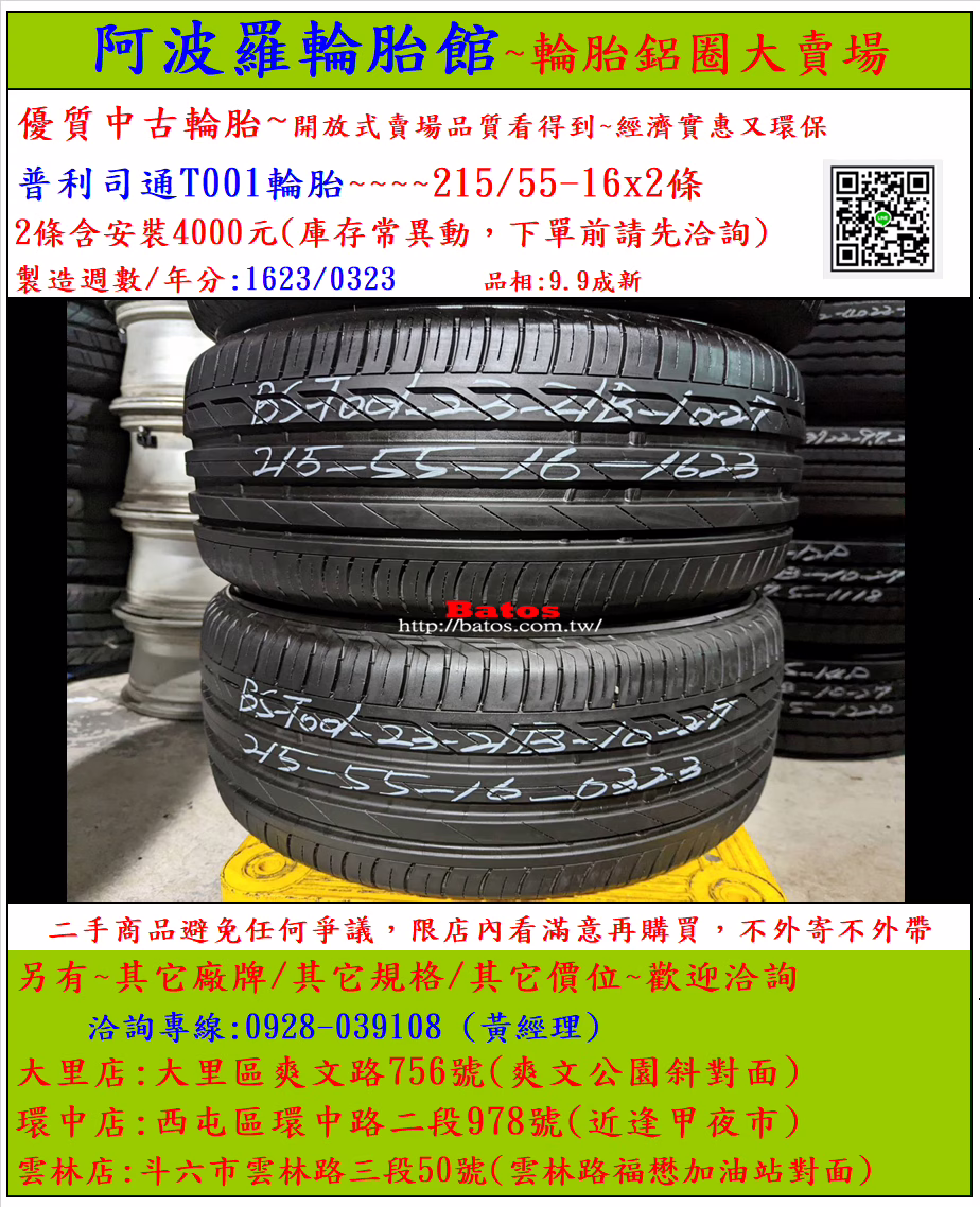 商品說明: 優質二手輪胎2條含安裝$4000元