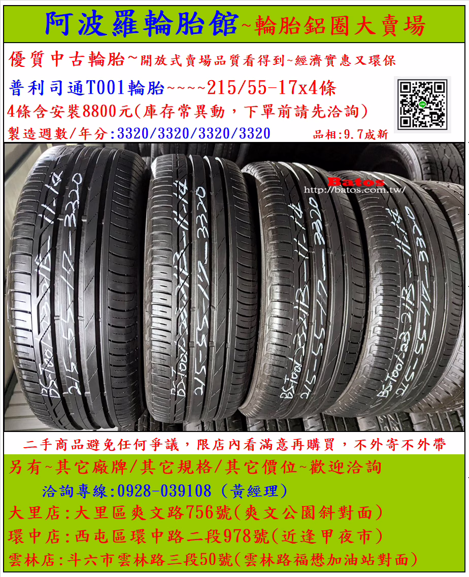 商品說明: 優質二手輪胎4條含安裝$8800元
