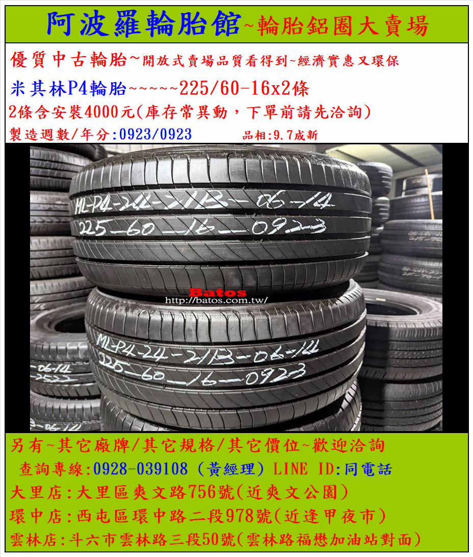 225/60-16 米其林 優質二手輪胎【請仔細詳閱商品說明】